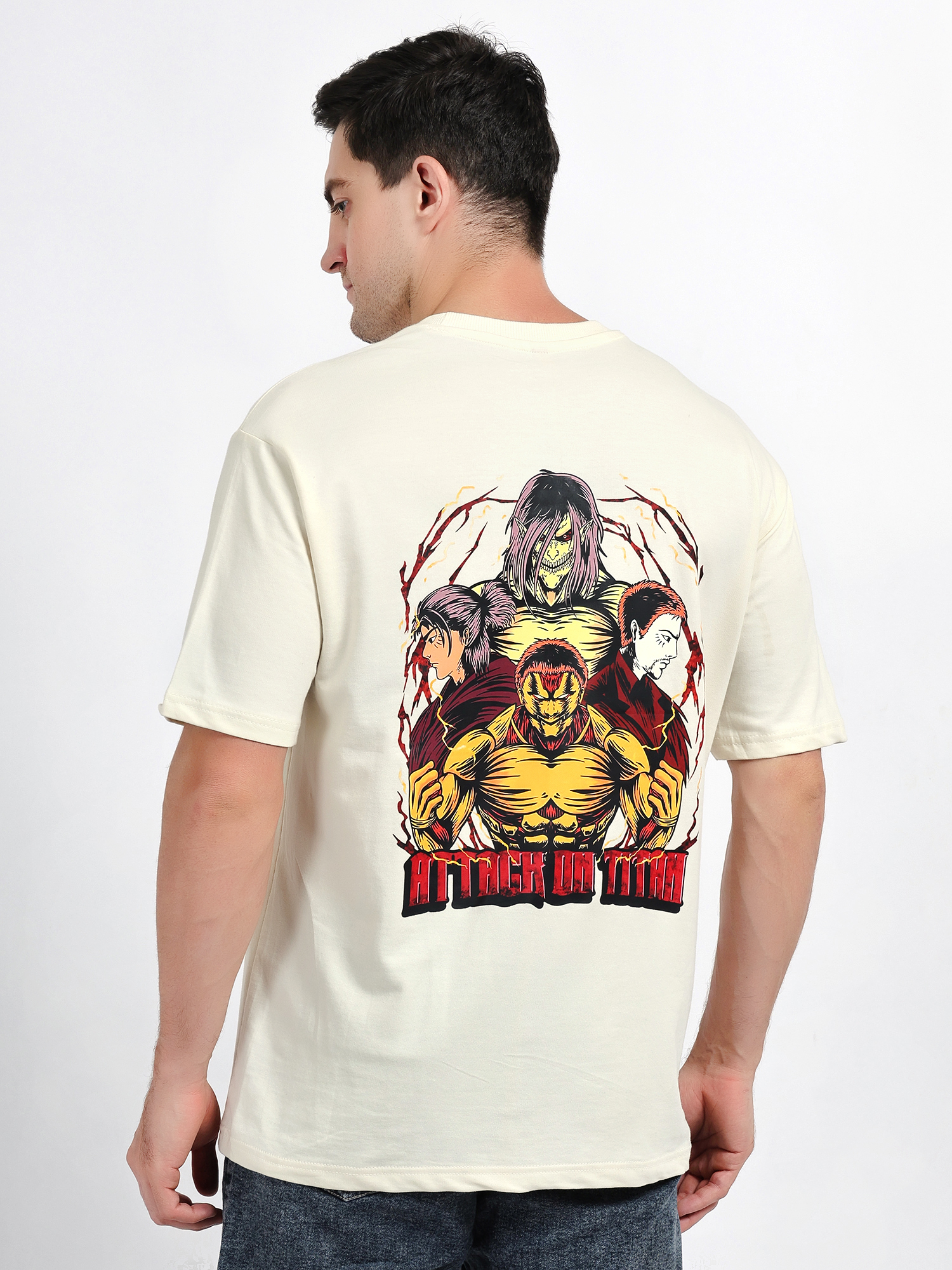 Gear up with this epic Attack on Titan T-shirt, featuring a bold and detailed print inspired by the hit anime series. Showcasing powerful artwork of iconic characters like Eren Yeager, Mikasa Ackerman, and Levi, this tee captures the intense energy and fearless spirit of the Scout Regiment.